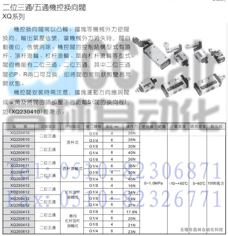 XQ230410,XQ230610,XQ250410,XQ250610,XQ230411,XQ230611,XQ250411,二位三通/五通機控換向閥 |