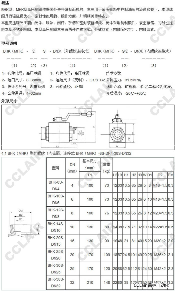 BHK-8S-DN4,BHK-10S-DN6,BHK-12S-DN8,BHK-14S-DN10,BHK-20S-DN15,高壓球閥