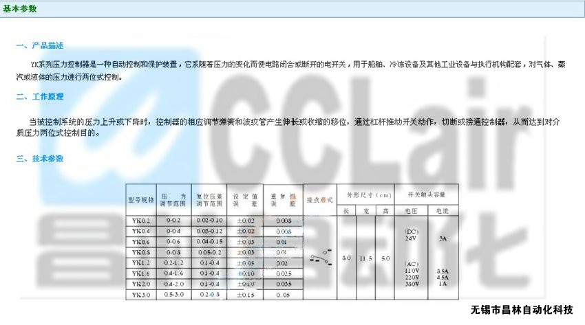 YK0.2,YK0.4,YK0.6,YK0.8壓力控制器,
