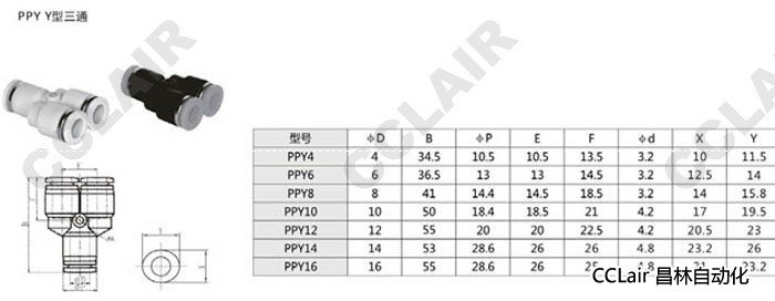 PPY4,PPY6,PPY8,PPY10,PPY12,PPY14,PPY16,Y型三通接頭