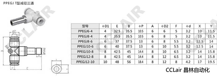 PPEGJ6-4,PPEGJ8-4,PPEGJ8-6,PPEGJ10-6,PPEGJ10-8,PPEGJ12-8,PPEGJ12-10,T型減徑三通接頭