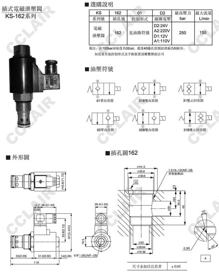 KS-162-01,KS-162-01B,KS-162-31,KS-162-02,KS-162-02B,KS-162-31B,插式電磁泄壓閥
