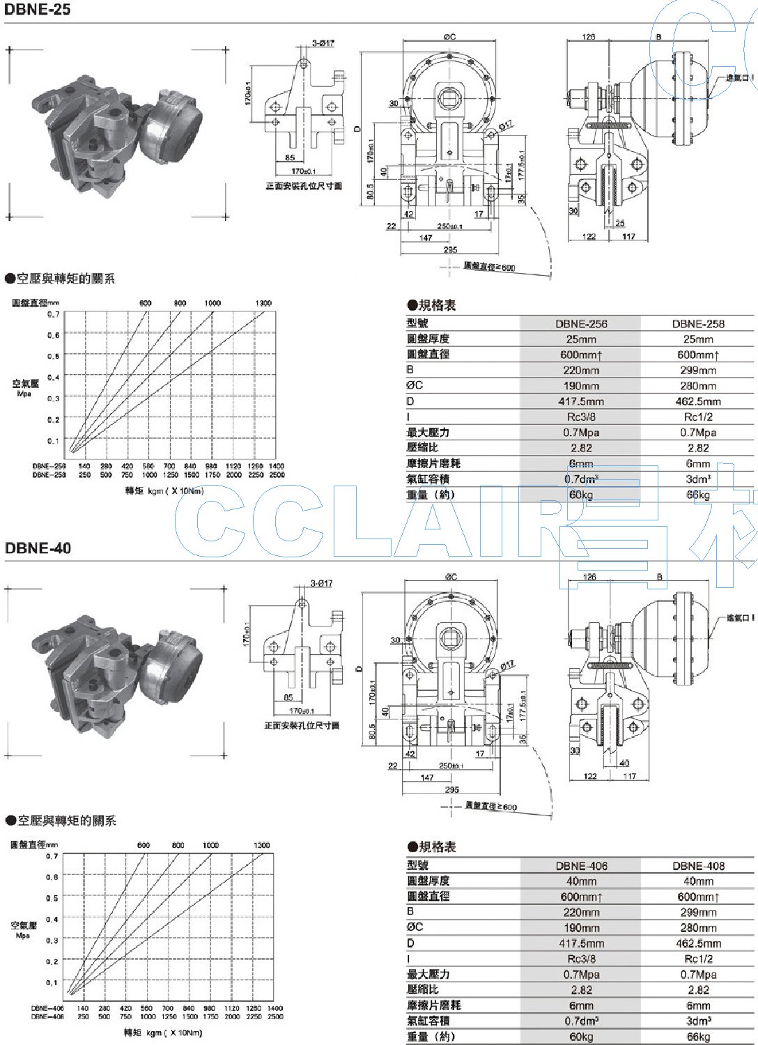 DBNE-256,DBNE-258,DBNE-406,DBNE-408,空壓碟式制動器