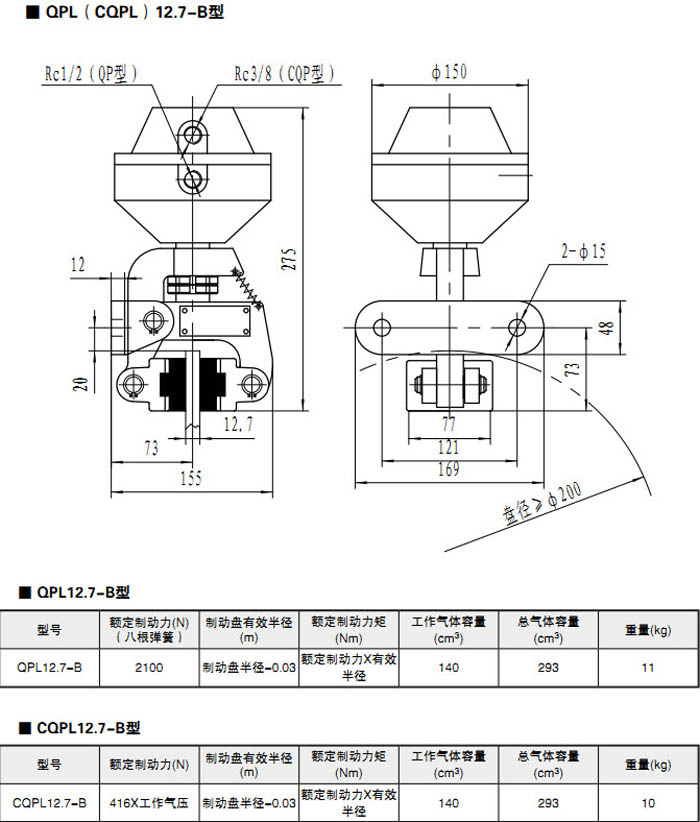 CQPL12.7A-B,QPL12.7-B,CQPL12.7-B,CPQ30-D,CPQ25.4-D,CQP20-D,氣動(dòng)鉗盤式制動(dòng)器