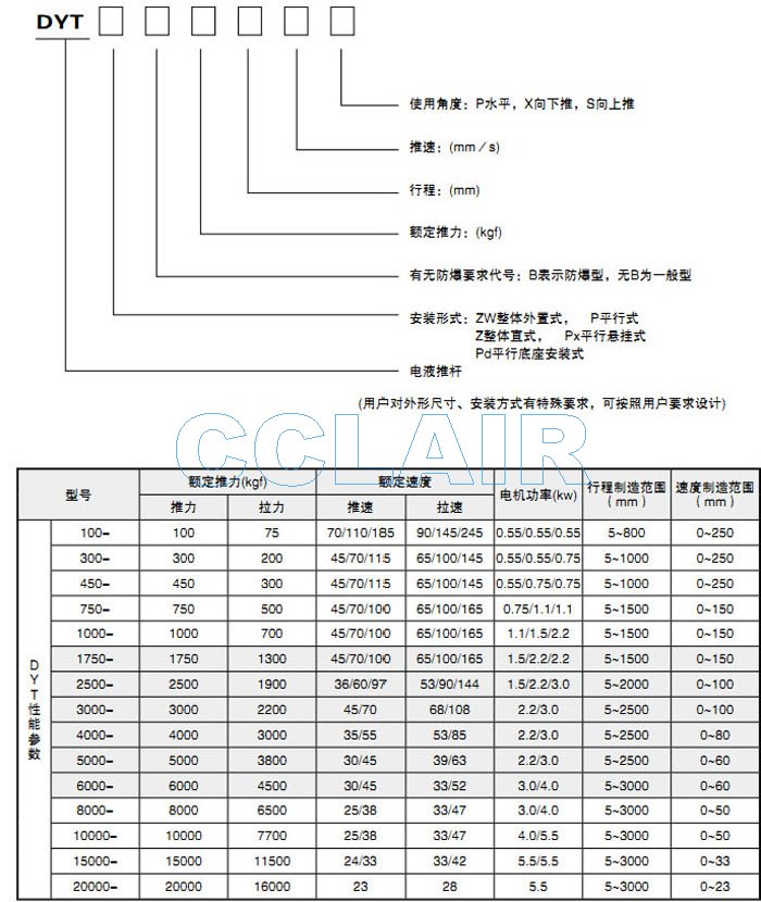 DYTPX100,DYTPX300,DYTPX450,DYTPX750,DYTPX1000,DYTPX1750,DYTPX2500,DYTPX3000,電液推桿