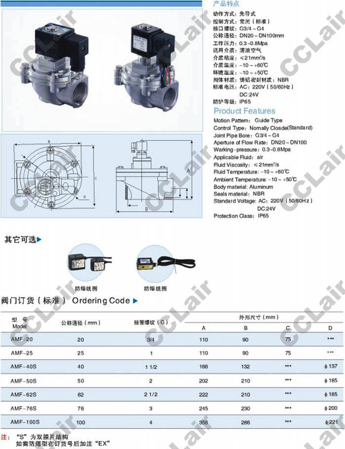 AMF-20,AMF-25,AMF-40S,AMF-50S,AMF-62S,AMF-76S,AMF-100S,脈沖電磁閥