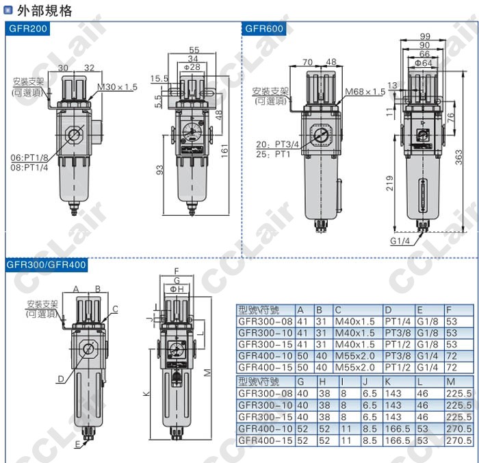 GFR200-06,GFR200-08,GFR300-08,GFR300-10,GFR300-15,GFR400-10,GFR400-15,GFR600-20,GFR600-25,調(diào)理組合