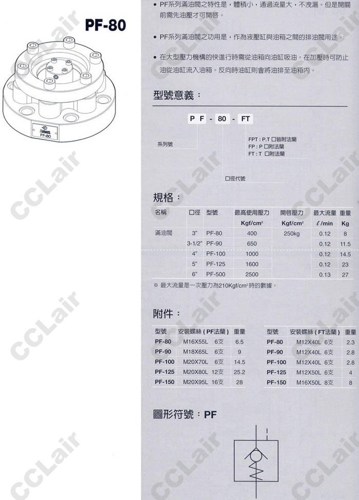 PF-80-FPT,PF-90-FPT,PF-100-FP,PF-125-FP,PF-125-FT,PF-150-FT,PF-100-FPT,滿油閥