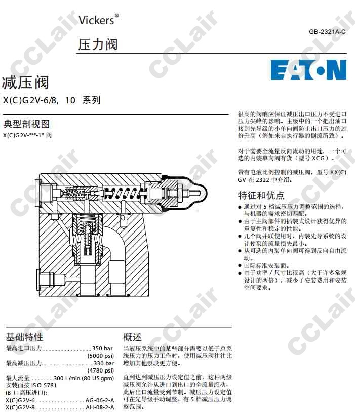 XG2V-6,XG2V-8,XCG2V-6,XCG2V-8,XG2V-6AK-10,XG2V-6AW-10,XG2V-6BK-10,威格士-VICKERS,減壓閥