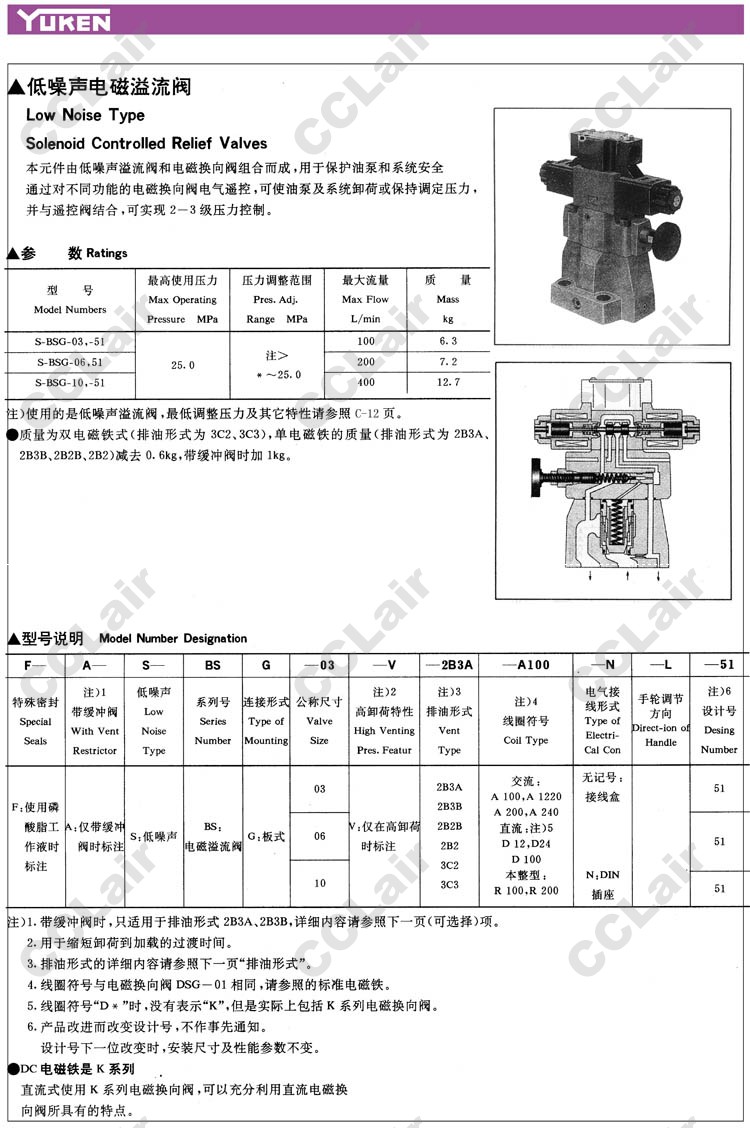 S-BSG-03,S-BSG-06,S-BSG-10,S-BSG-03-V-2B3A-A100-N-L-51,低噪聲電磁溢流閥
