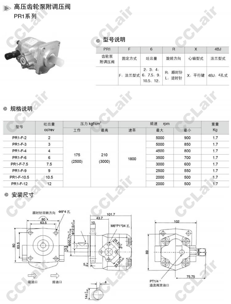 PR1-F-2RX-4BJ,PR1-F-3RX-4BJ,PR1-F-4RX-4BJ,PR1-F-6RX-4BJ,PR1-F-7.5RX-4BJ,高壓齒輪泵附調(diào)壓閥