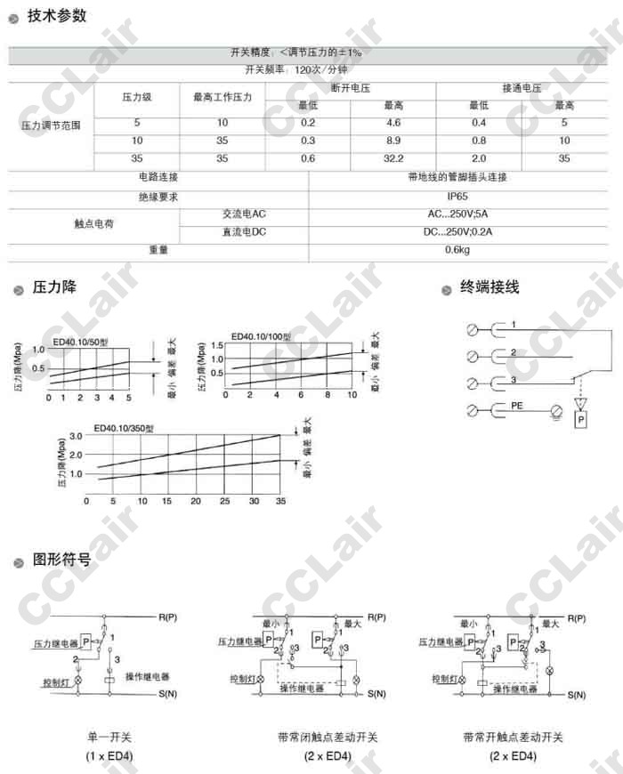 ED40-A-10,ED40-P-10,ED40-H-10,ED40-A-10-50-L24V,ED40-A-10-350-L24V,液電壓力繼電器
