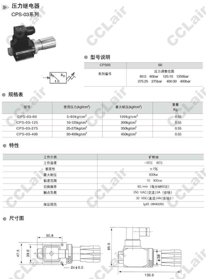 CPS-03-60,CPS-03-125,CPS-03-275,CPS-03-400,壓力繼電器