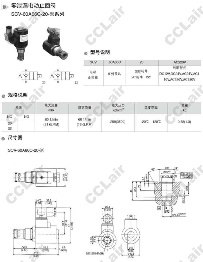 SCV-60A66C-20,SCV-60A66C-22,SCV-60A66C-20-DC12V,SCV-60A66C-20-DC24V,零泄漏電動(dòng)止回閥