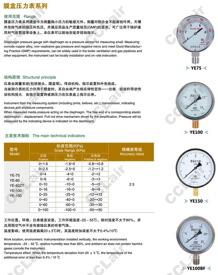 YE-50,YE-75,YE-60,YE-60ZT,YE-100,YE-150,膜盒壓力表