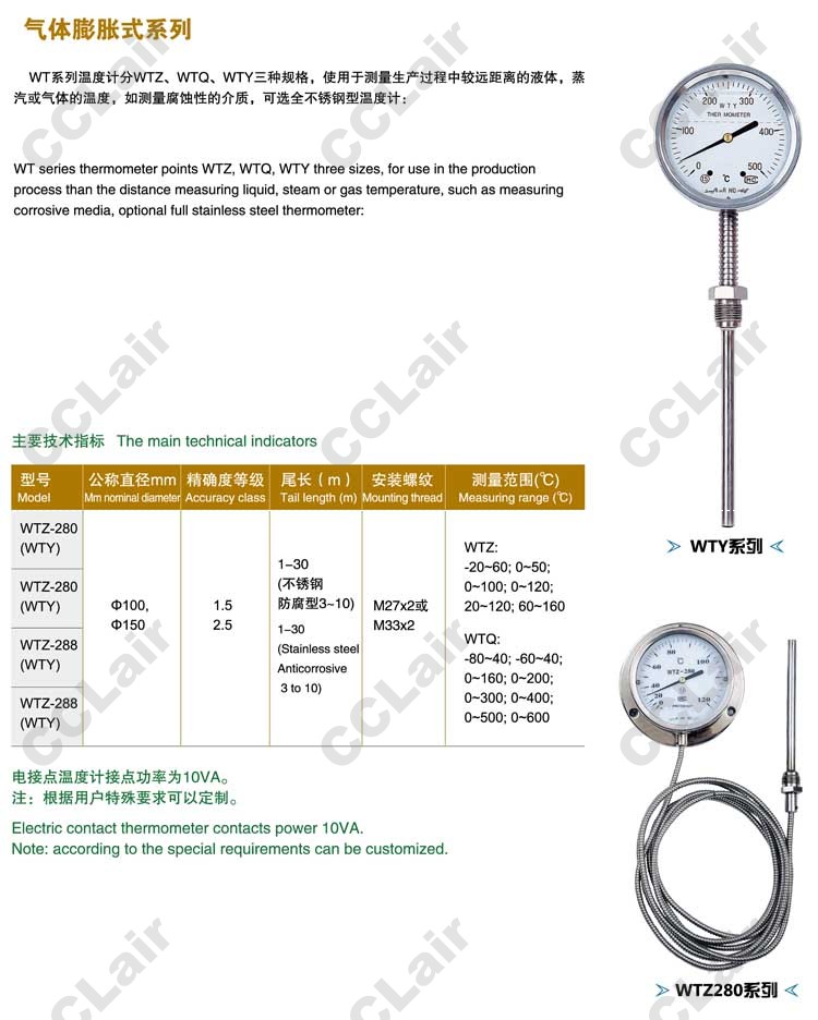 WTZ-280,WTZ-288,WTY-280,WTY-288,WTQ-280,WTQ-288,電接點溫度計