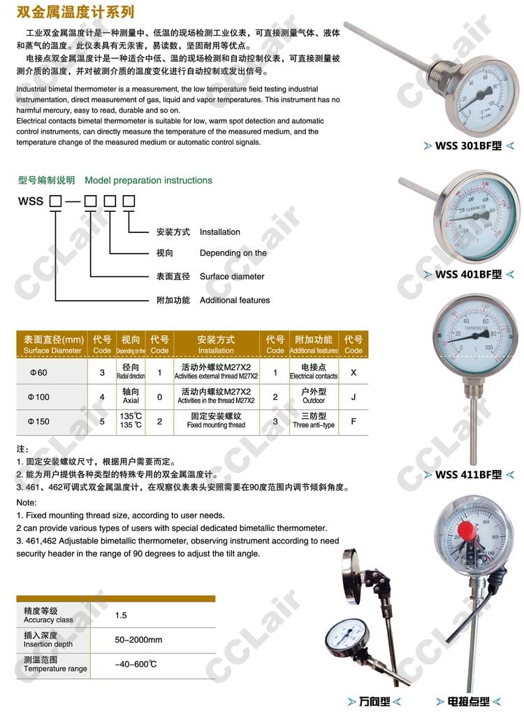 WSS-301BF,WSS-401BF,WSS-411BF,雙金屬溫度計
