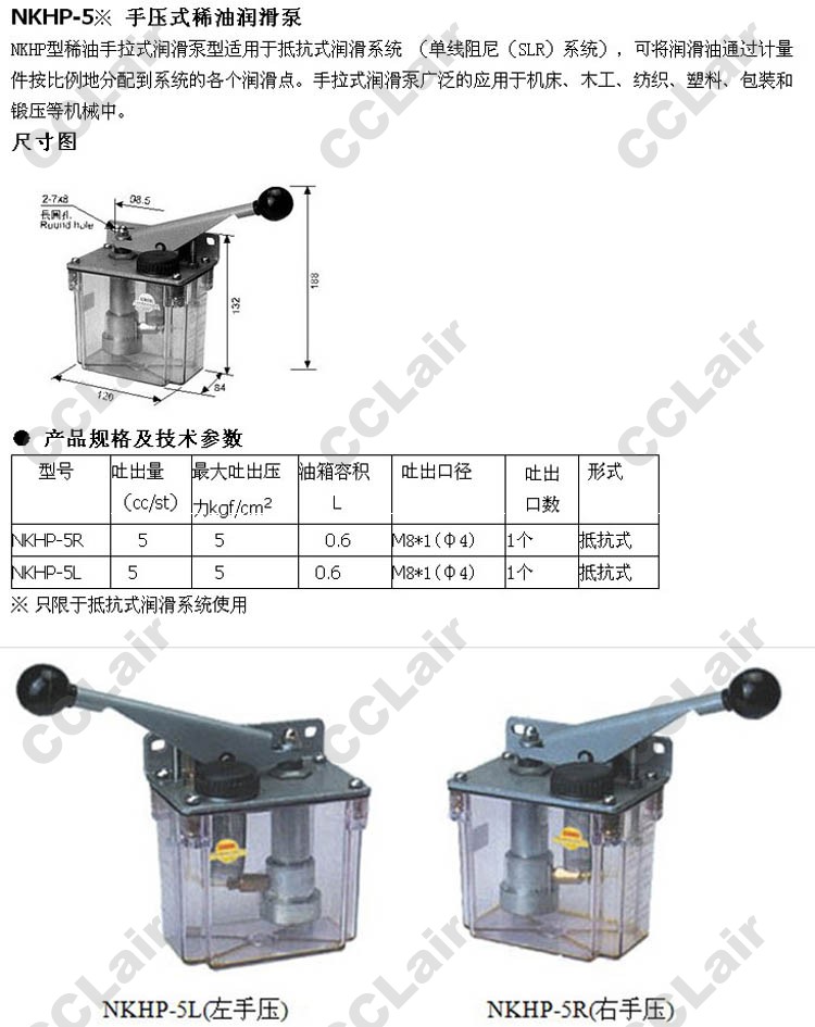 NKHP-5R,NKHP-5L,手壓式稀油潤滑泵