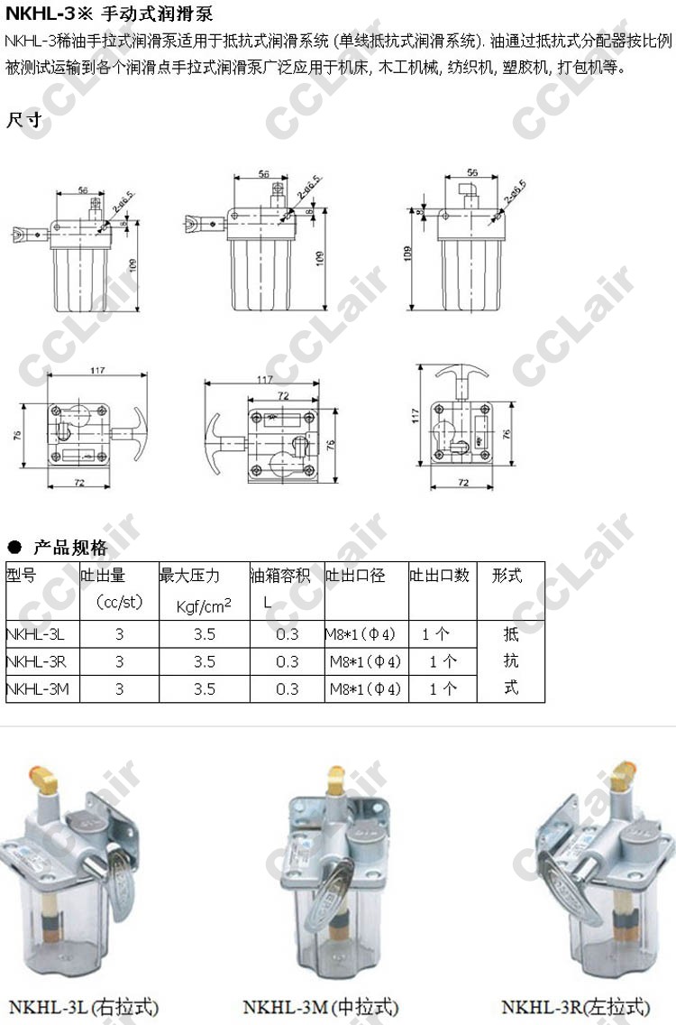 NKHL-3L,NKHL-3R,NKHL-3M,手動式潤滑泵