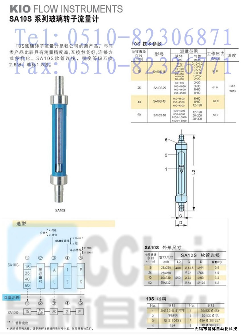SA10S-15,SA10S-25,SA10S-40,SA10S-50,玻璃轉子流量計