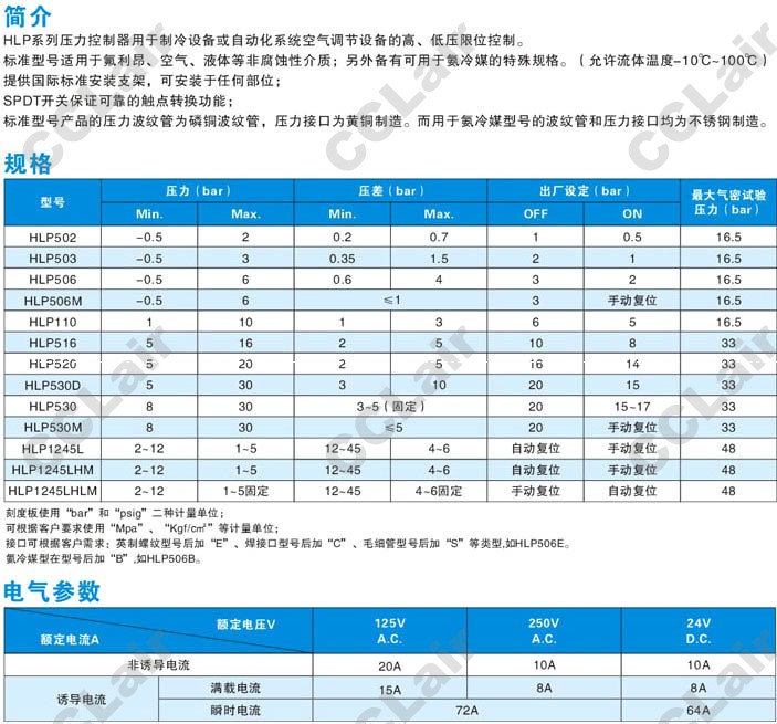 HLP502,HLP503,HLP506,HLP506M,HLP110,HLP516,HLP520,HLP530D,HLP530,HLP530M,HLP1245L,單壓控制器