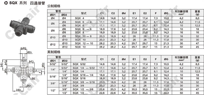 氣立可(chelic),SQX4,SQX8-6,SQX8,SQX10,SQX5/32,SQX1/4,SQX5/16,SQX3/8,SQX1/2,SQX6,SQX12 |