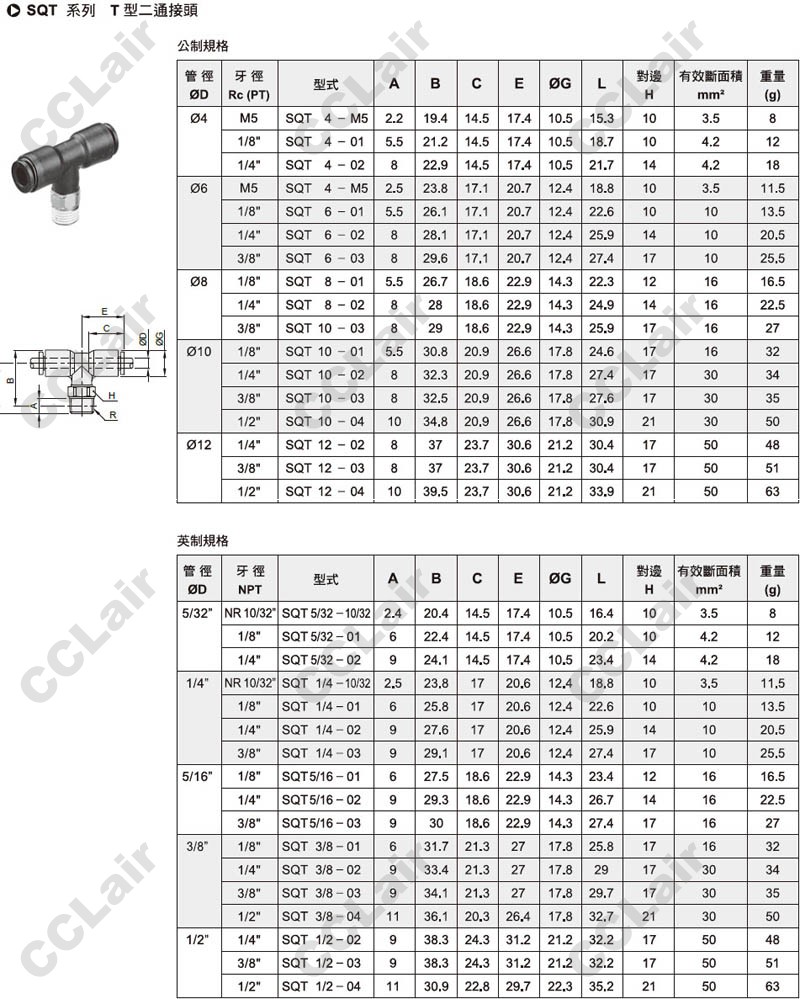 SQT4-M5,SQT4-01,SQT4-02,SQT6-M5,SQT6-01,SQT6-02,SQT6-03,SQT8-01,SQT8-02,SQT8-03,SQT10-01,T型二通接頭