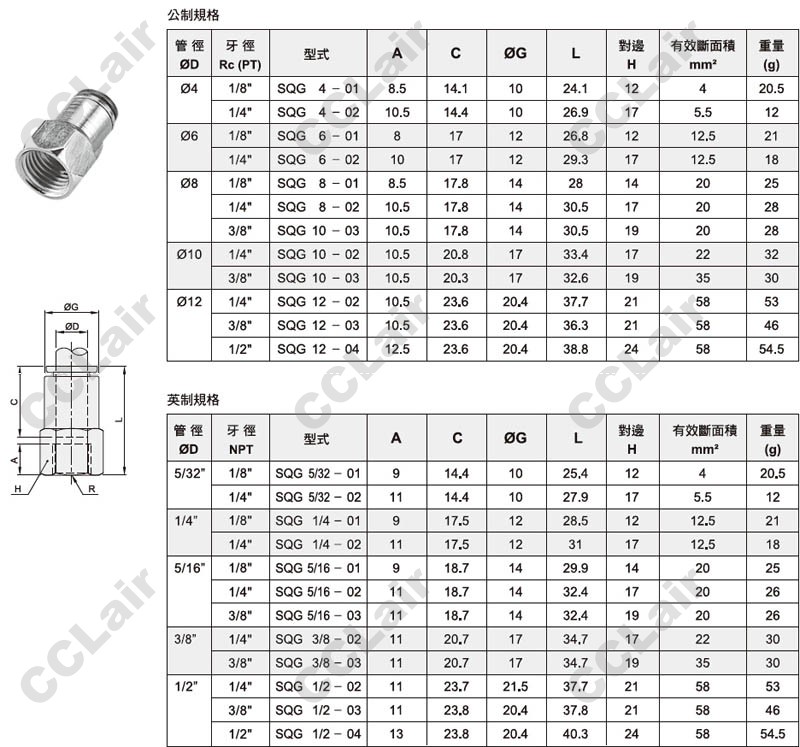 氣立可(chelic),SQG4-01,SQG6-01,SQG8,SQG10,SQG12,SQG5/32-01,SQG1/4,SQG5/16,SQG3/8,SQG1/2,