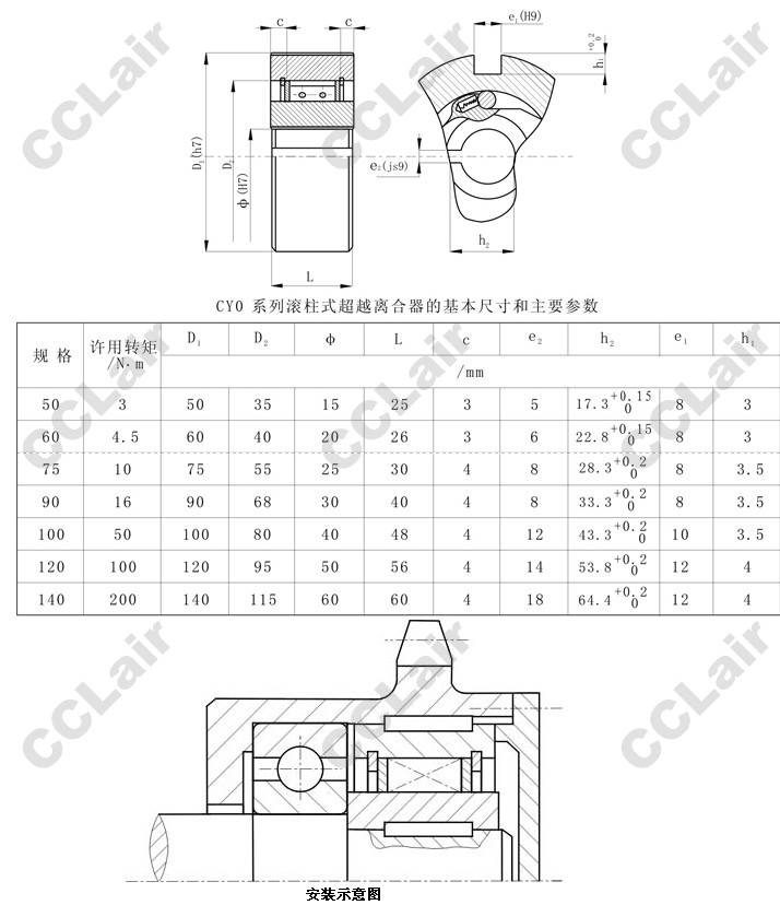 CY0-50,CY0-60,CY0-75,CY0-90,CY0-100,CY0-120,CY0-140,滾柱式超越離合器