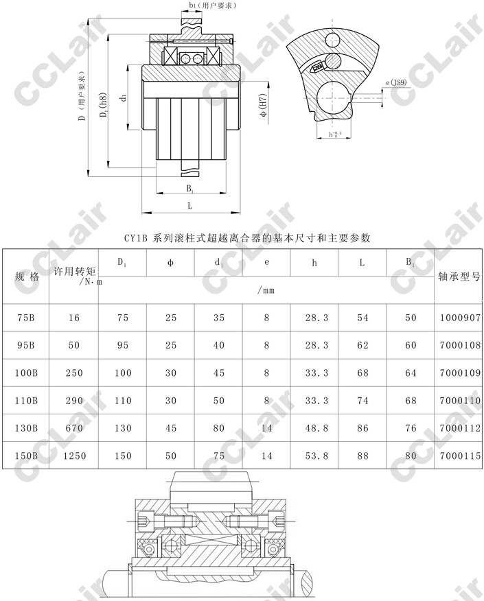 CY1-62,CY1-68,CY1-75A,CY1-75,CY1-90,CY1-95A,CY1-100,CY1-110B,CY1-130B,CY1-150B,滾柱式超越離合器
