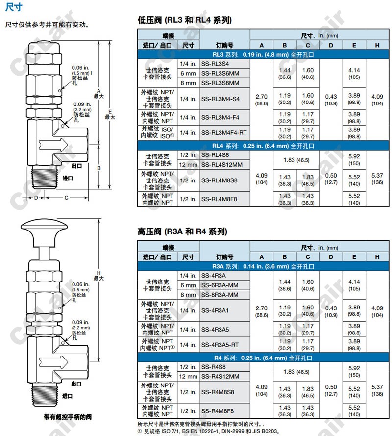 世偉洛克(swagelok),SS-RL3S4,SS-RL3S6MM,SS-RL3M4-S4,SS-RL4S8,SS-RL4M8S8,SS-4R3A,SS-R4S12MM,SS-R4M8S8,卸荷閥 |