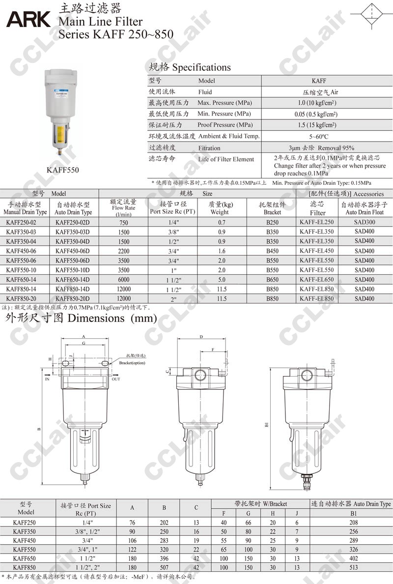 KAFF550-06,KAFF550-06D,KAFF550-10D,KAFF650-14,CCLair KAFF650-14D,KAFF850-14,KAFF850-14D,KAFF850-20D,