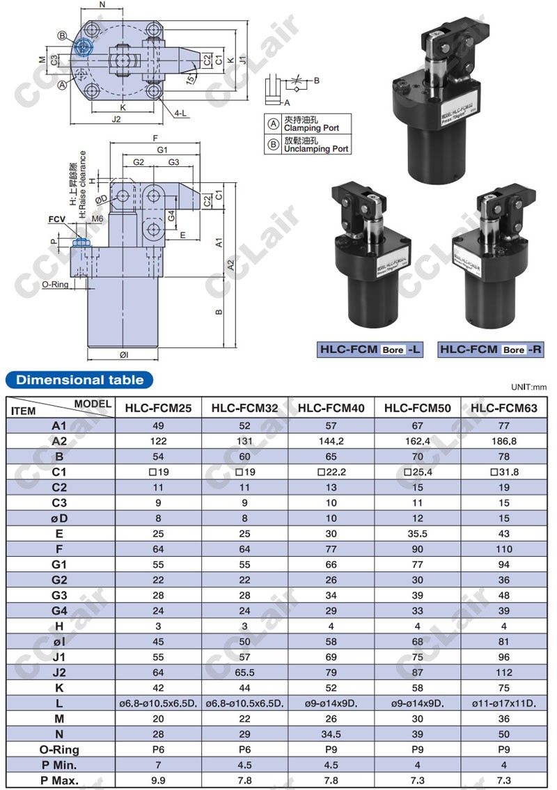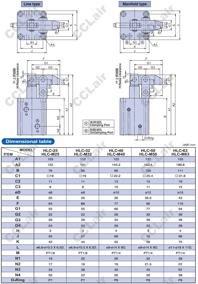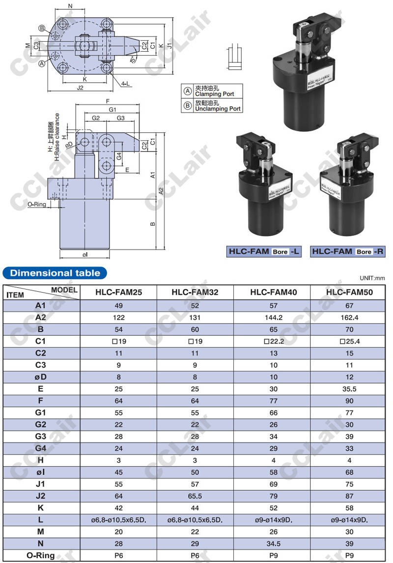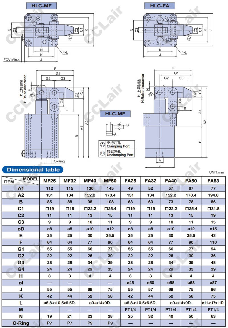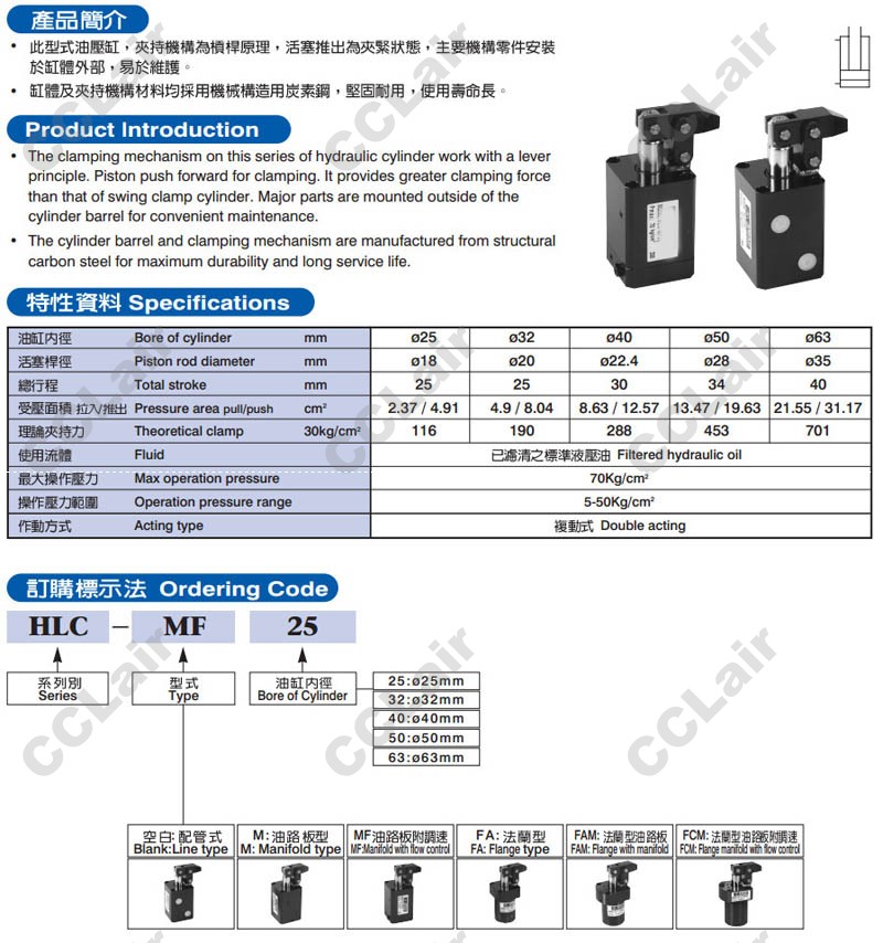 型號: 臺灣聯(lián)鎰(amac),HLC-25,HLC-32,HLC-40,HLC-M25,HLC-MF25,HLC-FA25,HLC-FAM32,HLC-FCM40,HLC-50,HLC-63,杠桿式油壓缸