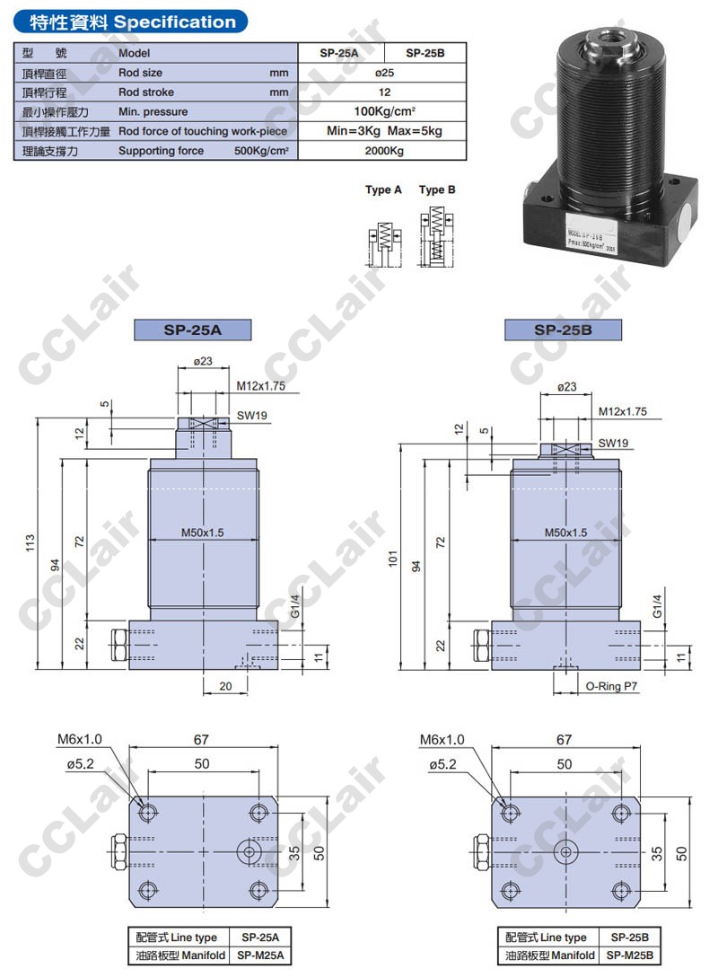 臺灣聯(lián)鎰(amac),SP-25A,SP-25B,SP-32B,SP-40B,高壓支撐缸