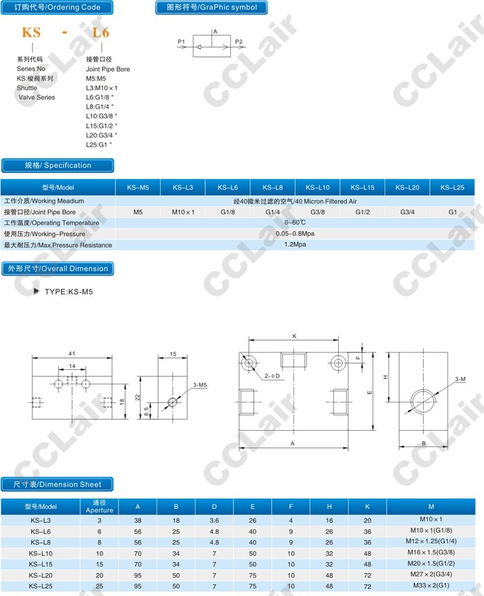 KS-M5,KS-L3,KS-L6,KS-L8,KS-L10,KS-L15,KS-L20,KS-L25,梭閥