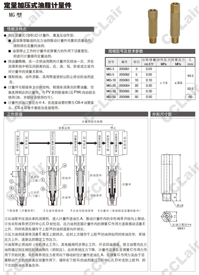 MG-3,MG-5,MG-10,MG-20,MG-30,MG-50,定量加壓式油脂計量件