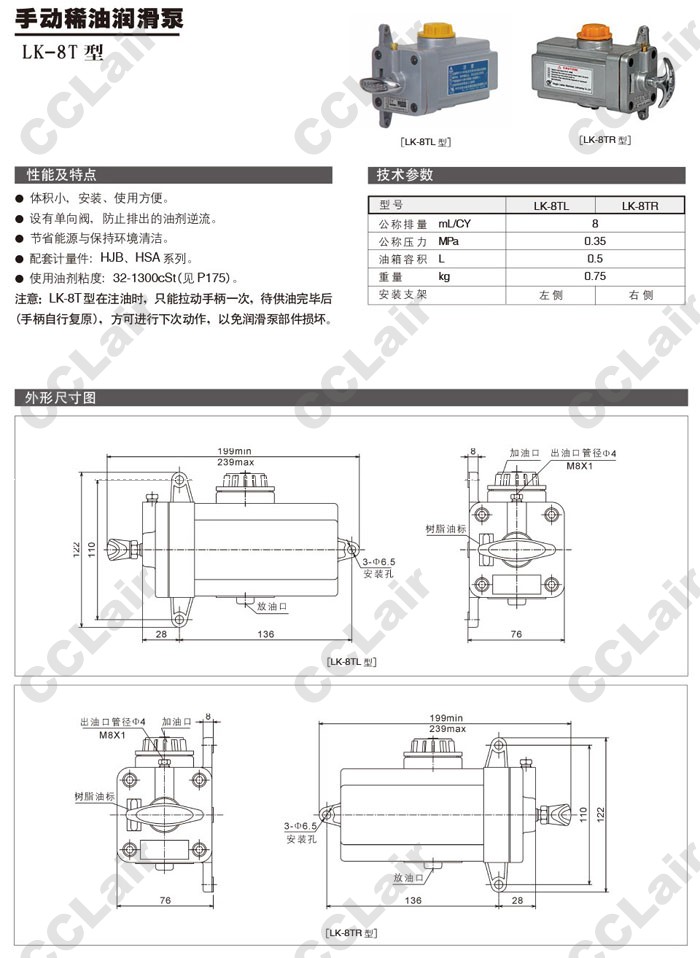 LK-8TL,LK-8TR,手動稀油潤滑泵