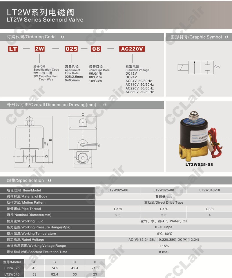 LT2W025-06,LT2W025-08,LT2W040-10,二位二通電磁閥