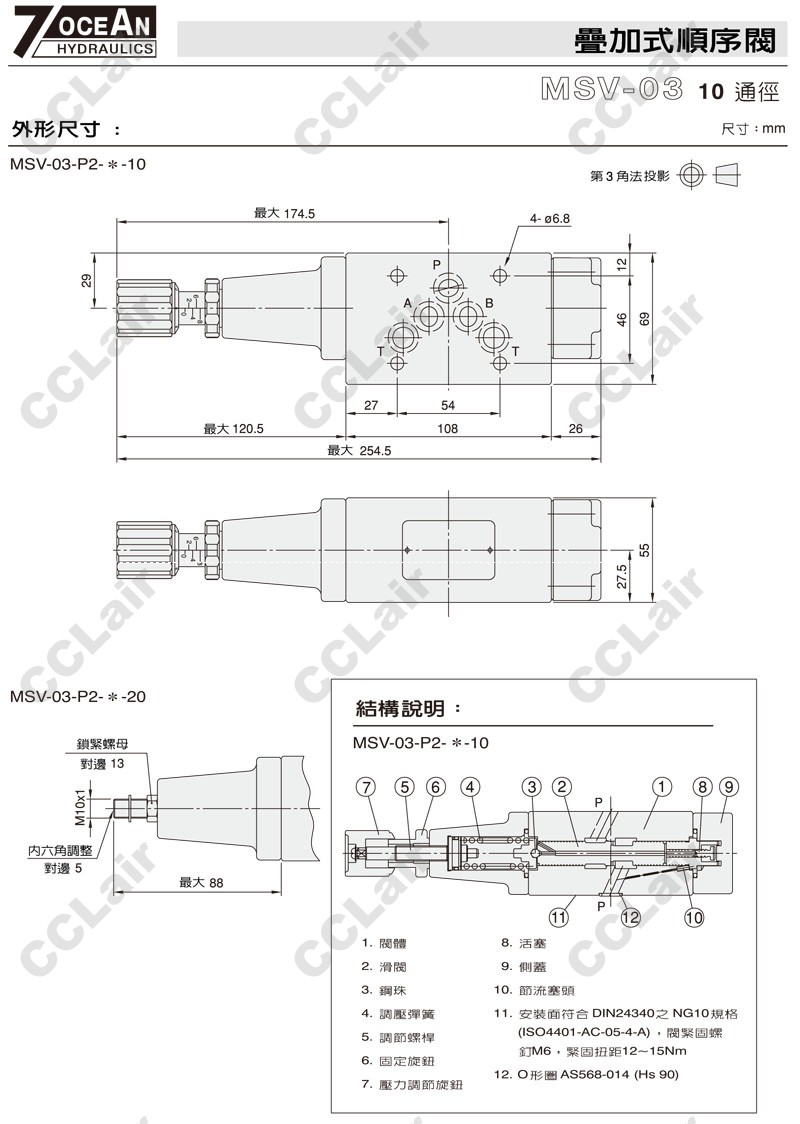 MSV-03-P2,MSV-03-P2-1-10,MSV-03-P2-2-10,MSV-03-P2-1-20,MSV-03-P2-2-20,7OCEAN七洋疊加式壓力順序閥