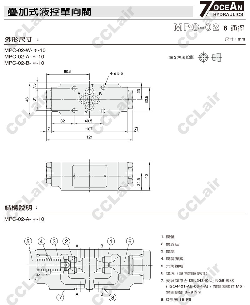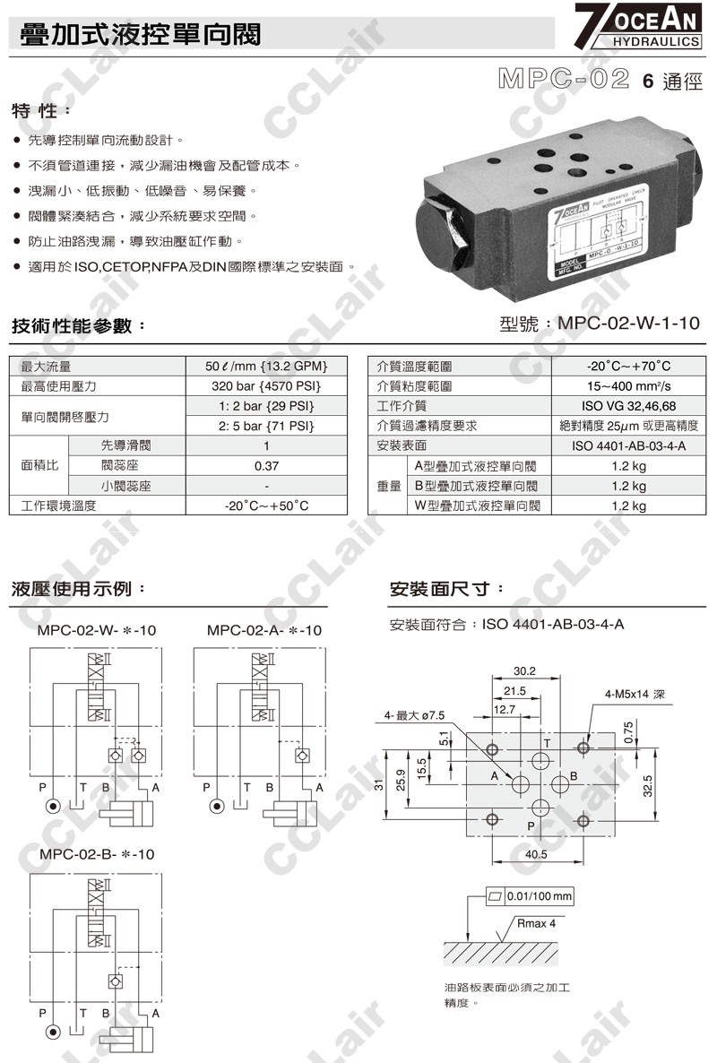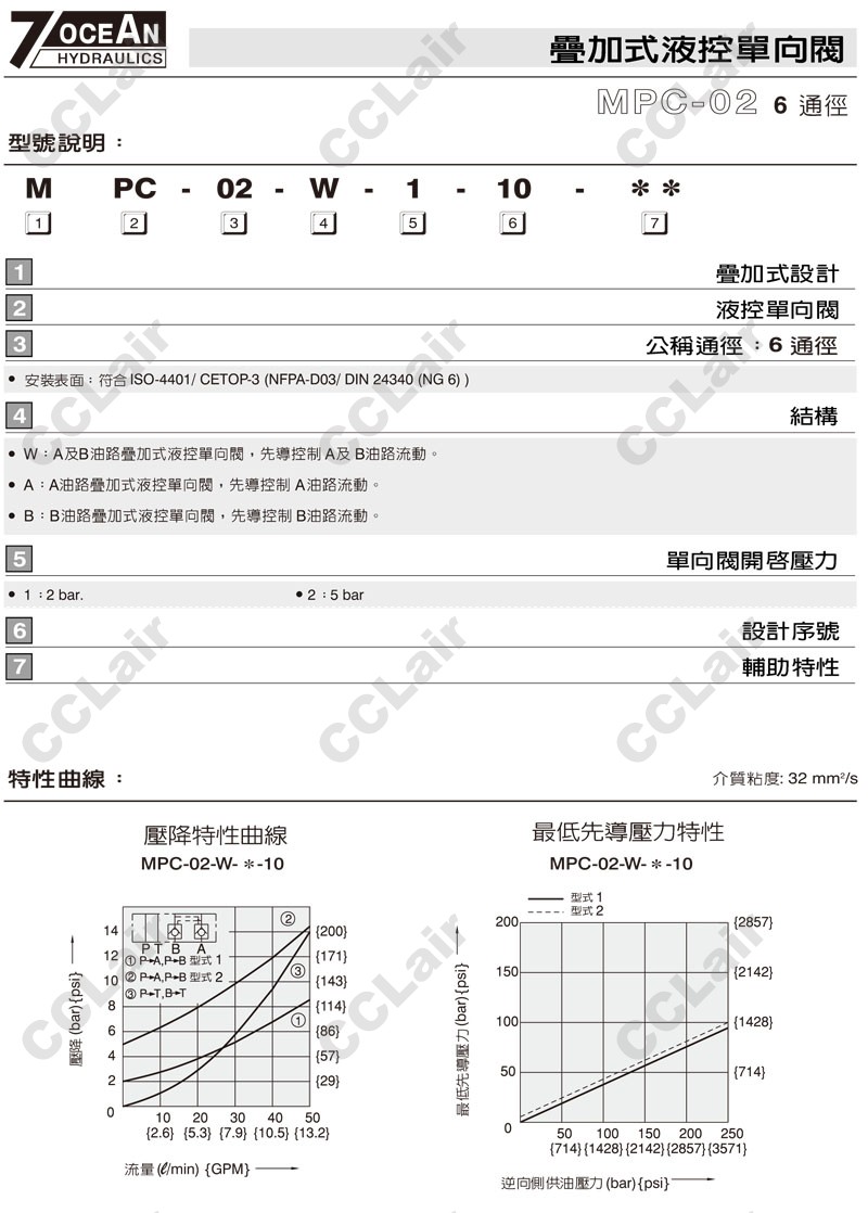 MPC-02-W,MPC-02-A,MPC-02-B,MPC-02-B-2-10,MPC-02-W-1-10,7OCEAN七洋疊加式液控單向閥 |