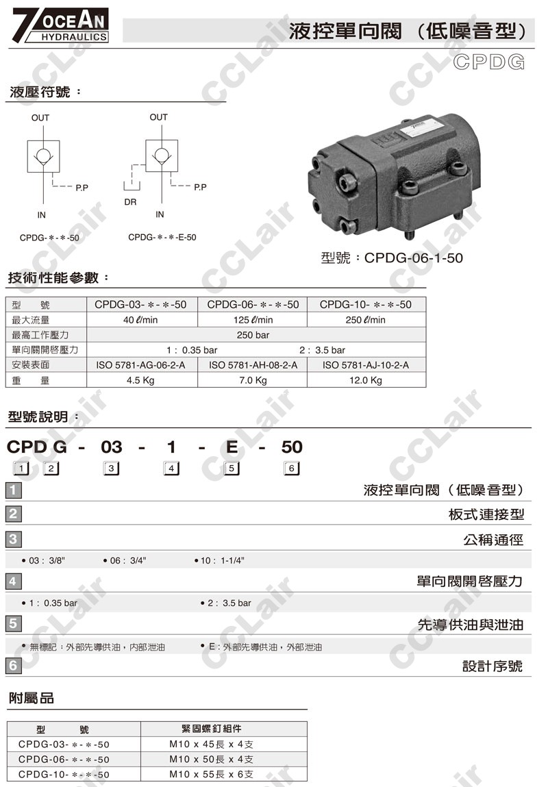 CPDG-03,CPDG-06,CPDG-10,CPDG-03-1-50,CPDG-10-1-E-50,CPDG-06-2-50,7OCEAN七洋液控單向閥