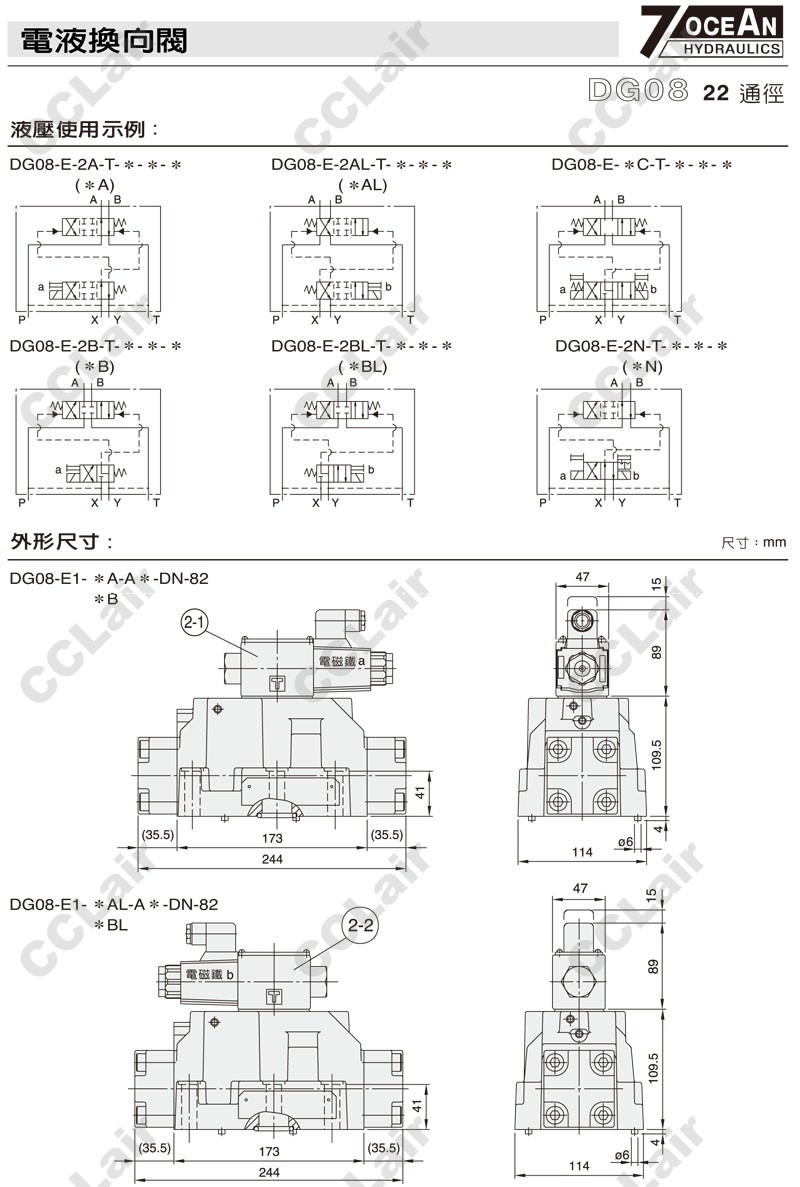 DG08-E1,DG08-E2,DG08-E1-11BL-ET-A110-DN-82,DG08-E2-11BL-E-A120-DN-82,7OCEAN七洋電液換向閥