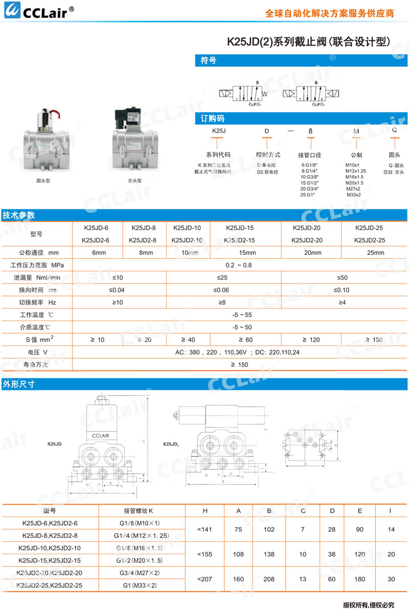 K25JD-6,K25JD-8,K25JD-10,K25JD-20,K25JD-25,K25JD2-25,K25JD2-8,K25JD2-10,二位五通截止式氣控?fù)Q向閥