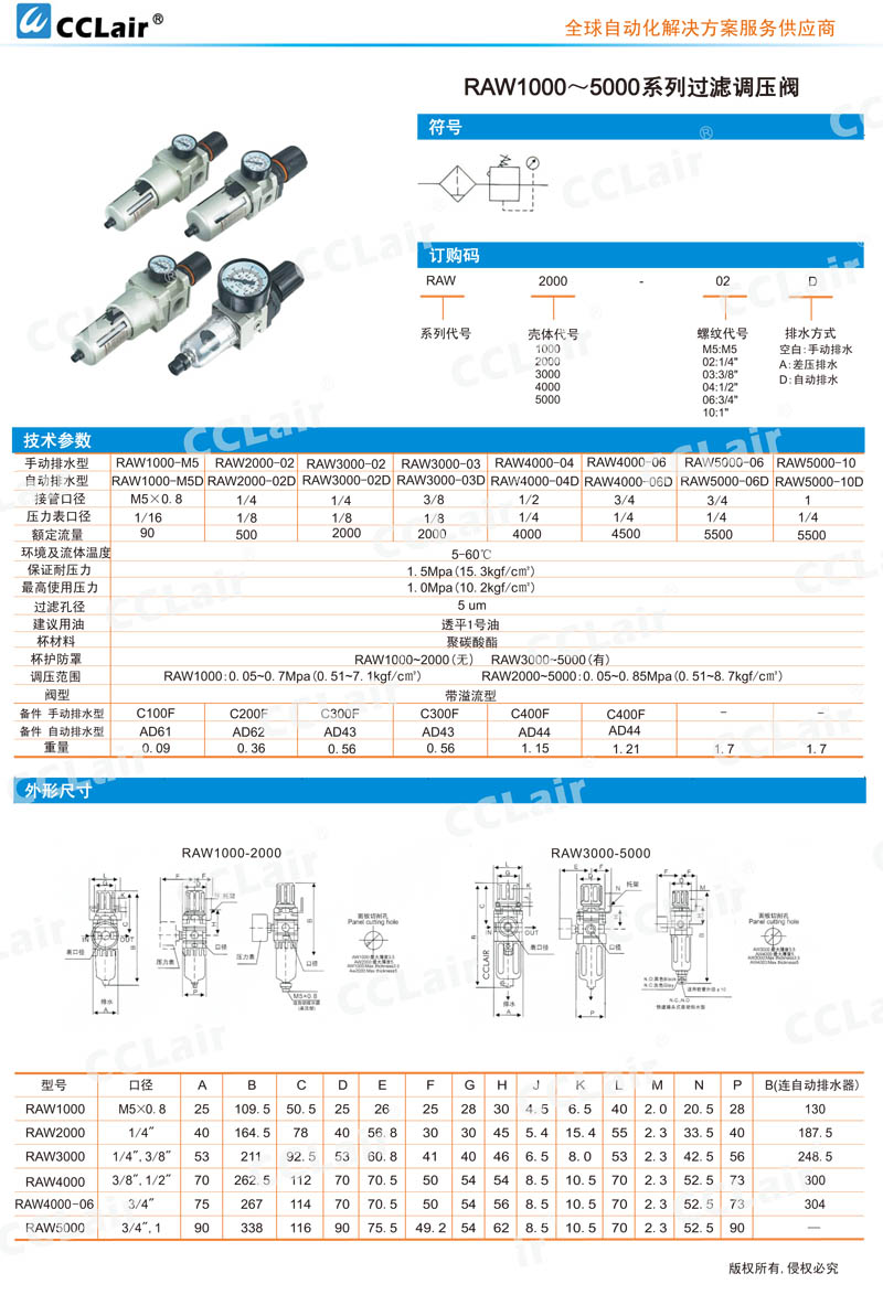 RAW1000,RAW2000,RAW3000,RAW4000,RAW5000,RAW4000-06D,RAW1000-M5,RAW2000-02,過濾調(diào)壓閥