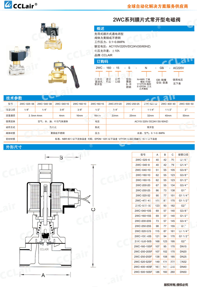 2WC025-06,2WC040-08,2WC160-15,2WC200-20S,ZWC250-25S,2WC320-32,2WC400-40S,2WC500-50SF,膜片式常開(kāi)型電磁閥