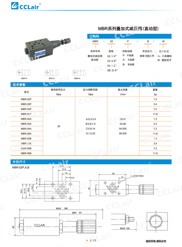 MBR-02,MBR-03,MBR-04,MBR-06,MBR-02P,MBR-03A,MBR-04B,疊加式減壓閥