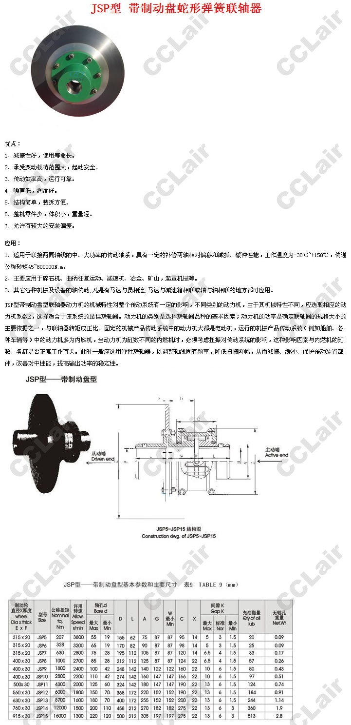 JSP5,JSP6,JSP7,JSP8,JSP9,JSP10,JSP11,JSP12,JSP13,JSP14,JSP15,帶制動盤蛇形彈簧聯(lián)軸器