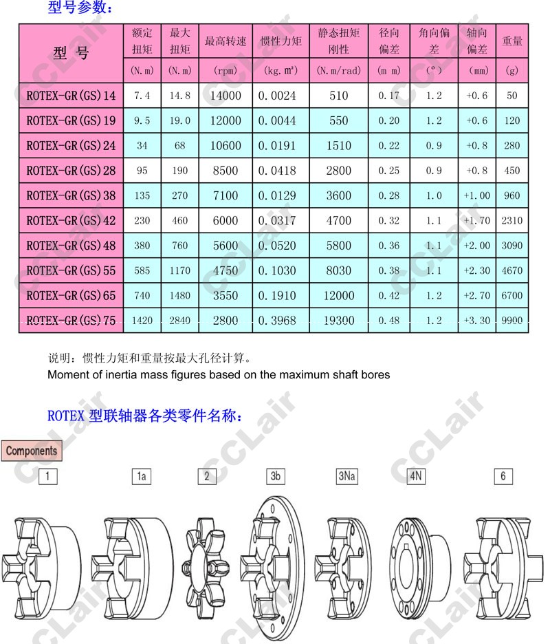 型號: ROTEX-GR(GS)19,ROTEX-GR(GS)24,ROTEX-GR(GS)38,ROTEX-GR(GS)42,ROTEX-GR(GS)55,鋁合金無齒隙梅花彈性聯(lián)軸器