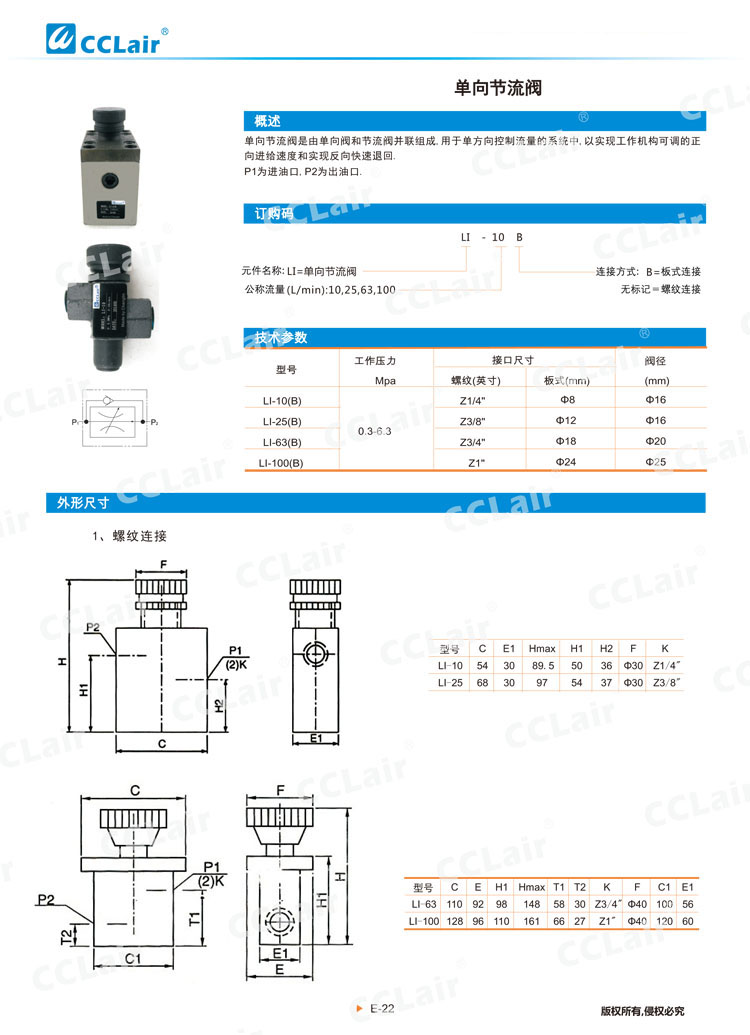 LI-10,LI-25,LI-63,LI-100,LI-10B,LI-25B,LI-63B,LI-100B,單向節(jié)流閥