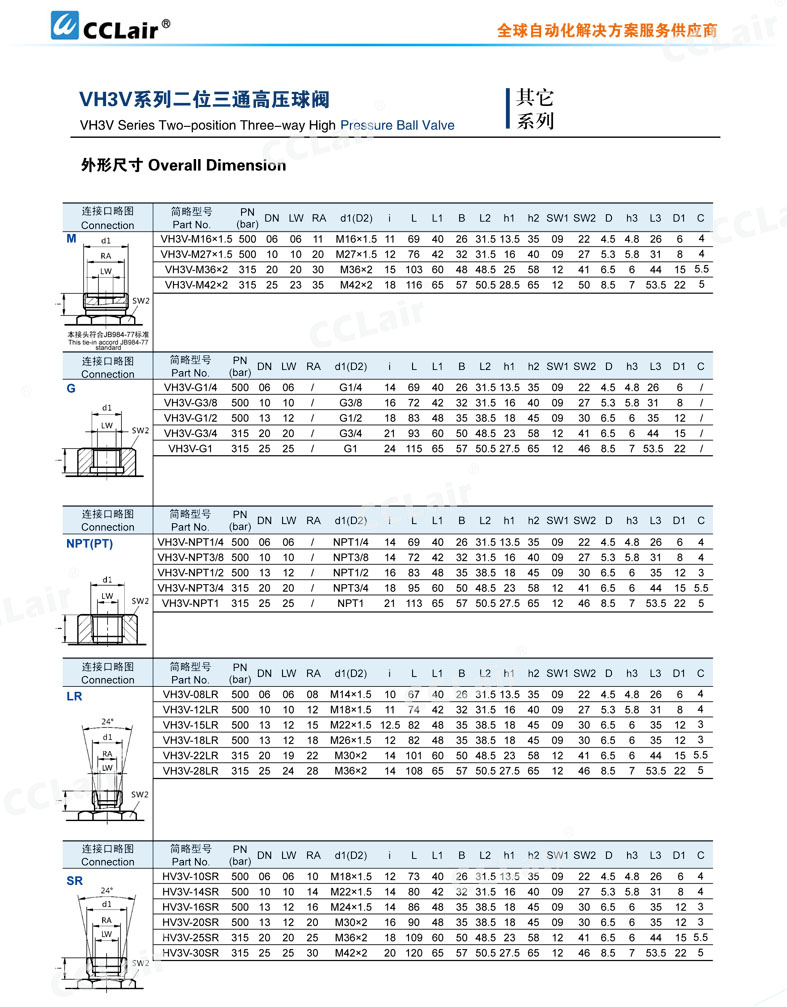 VH3V-NPT1/4,VH3V-NPT3/8,VH3V-NPT1/2,VH3V-NPT3/4,VH3V-NPT1,二位三通高壓球閥